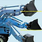 When the bucket is lowered and the lever is pushed, the float function is activated to protect the loader. When the bucket encounters obstacles, the bucket link automatically folds to protect the loader and tractor. |