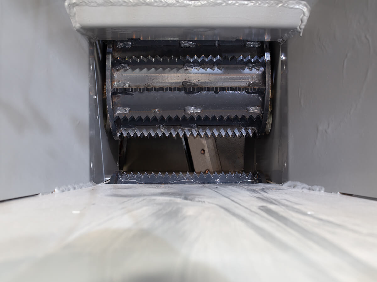 • Highly hardened rotor (not cast iron) with 4 reversible knives and 1 at the bottom for adjusting the cutting thickness..