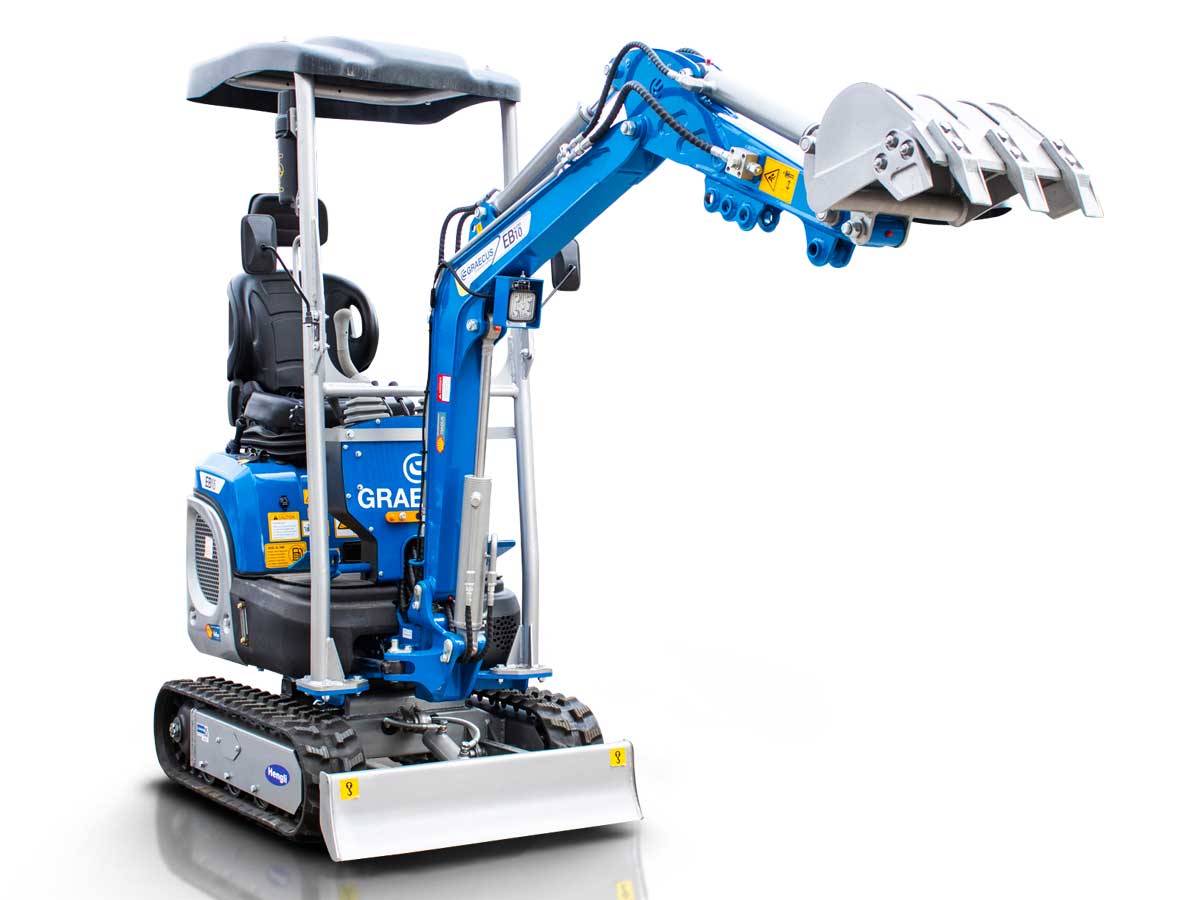 Standard equipment includes electric start with 12V starter, hour meter and removable canopy