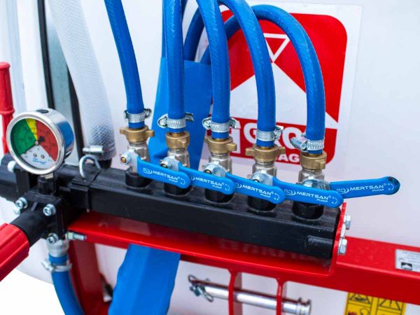 • Χειριστήριο 5 εξόδων, παροχής 150 Lt/Min. και 50 BAR, με ρύθμιση πίεσης και κεντρικό διακόπτη.