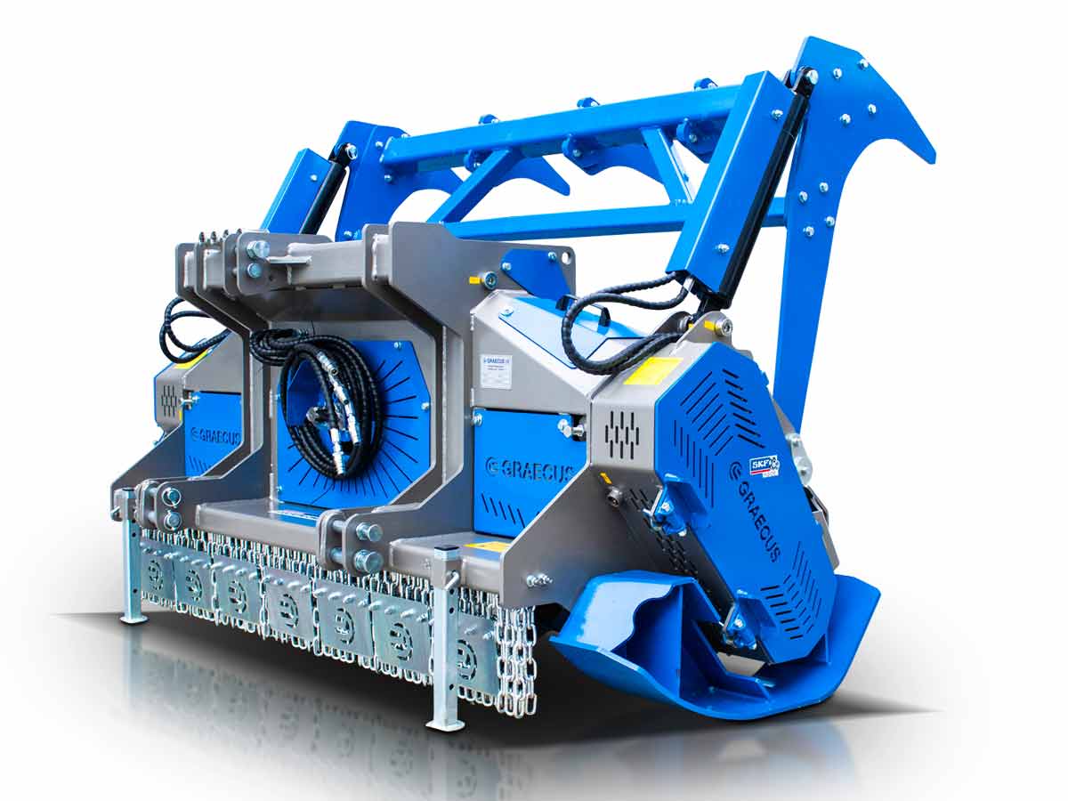 - Καταστροφέας υπερβαρέως τύπου με διπλό σκάφος 8+8mm και πλαινά 12mm, με υδραυλικά ανοιγόμενο πίσω θόλο, κατάλληλο για δασοκομική χρήση.