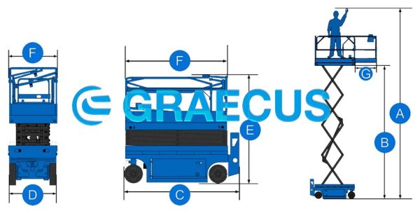 Εξέδρα εργασίας ψαλιδωτή με ύψος εργασίας 8 m και ανυψωτική ικανότητα 230 kg. Εργοεξέδρα με ηλεκτρική πορεία και ανύψωση