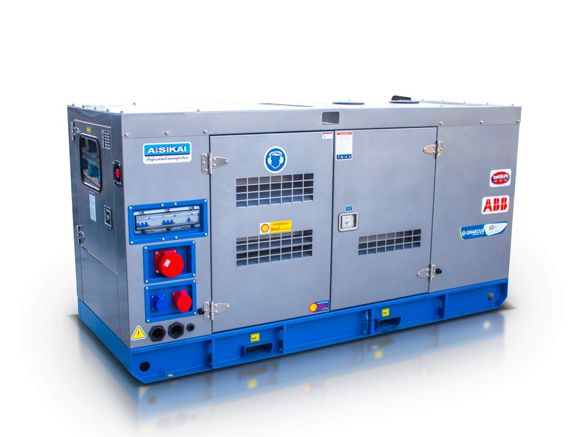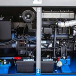 - Στιβαρό πλαίσιο βάσης από ατσάλι με αντικραδασμικές βάσεις και δεξαμενή πετρελαίου ικανή για λειτουργεία 8-10 ωρών στο 75% της ισχύος.