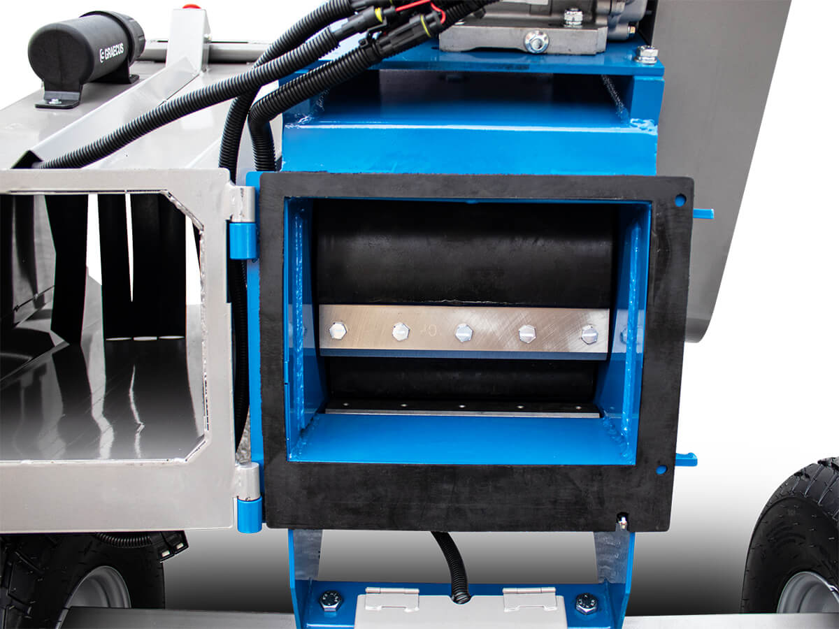 • Σύστημα κοπής τυμπάνου με 2 μαχαίρια διπλού προφίλ συν 1 σταθερό, υψηλής σκλήρυνσης για την ρύθμιση του πάχους κοπής.