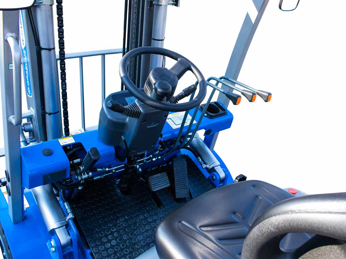 ελέγχου τοποθετημένος στα δεξιά του χειριστή εξασφαλίζουν μέγιστη ορατότητα και καλύτερο έλεγχο. - Υδραυλικό τιμόνι μειωμένων στροφών μειώνει την κόπωση βελτιώνοντας τον έλεγχο.