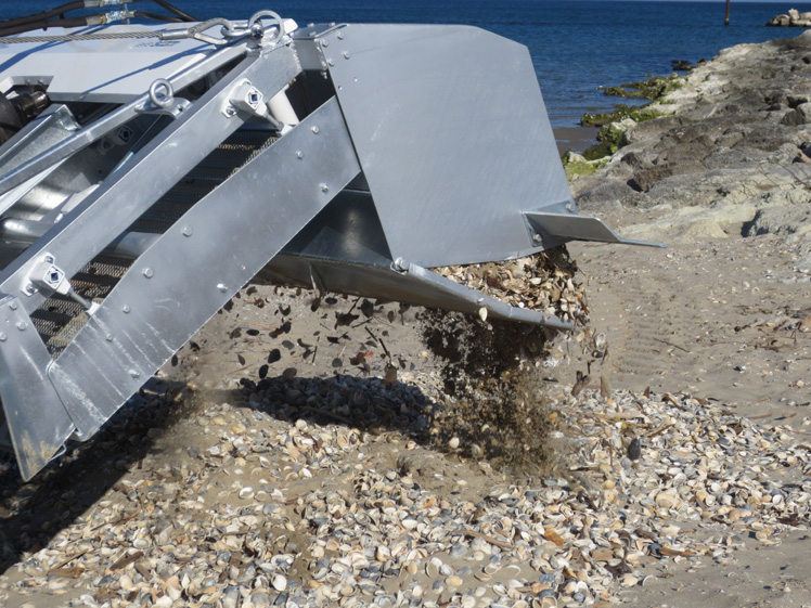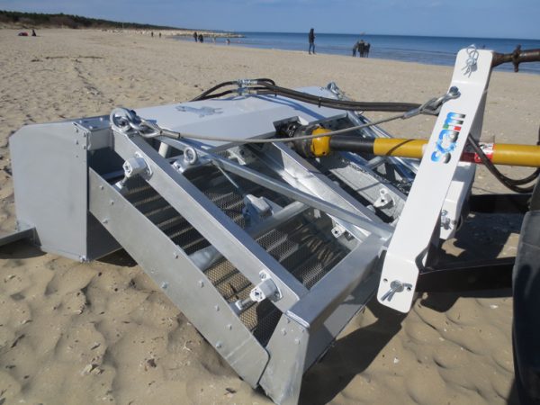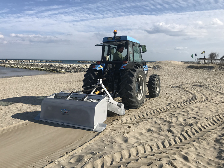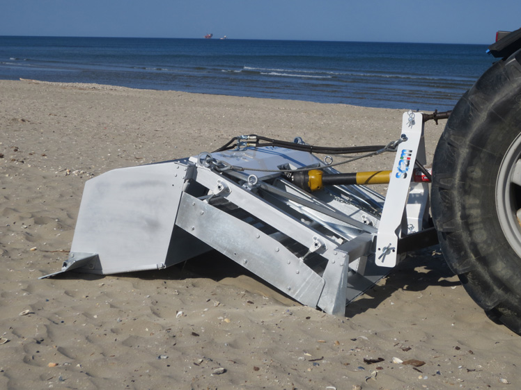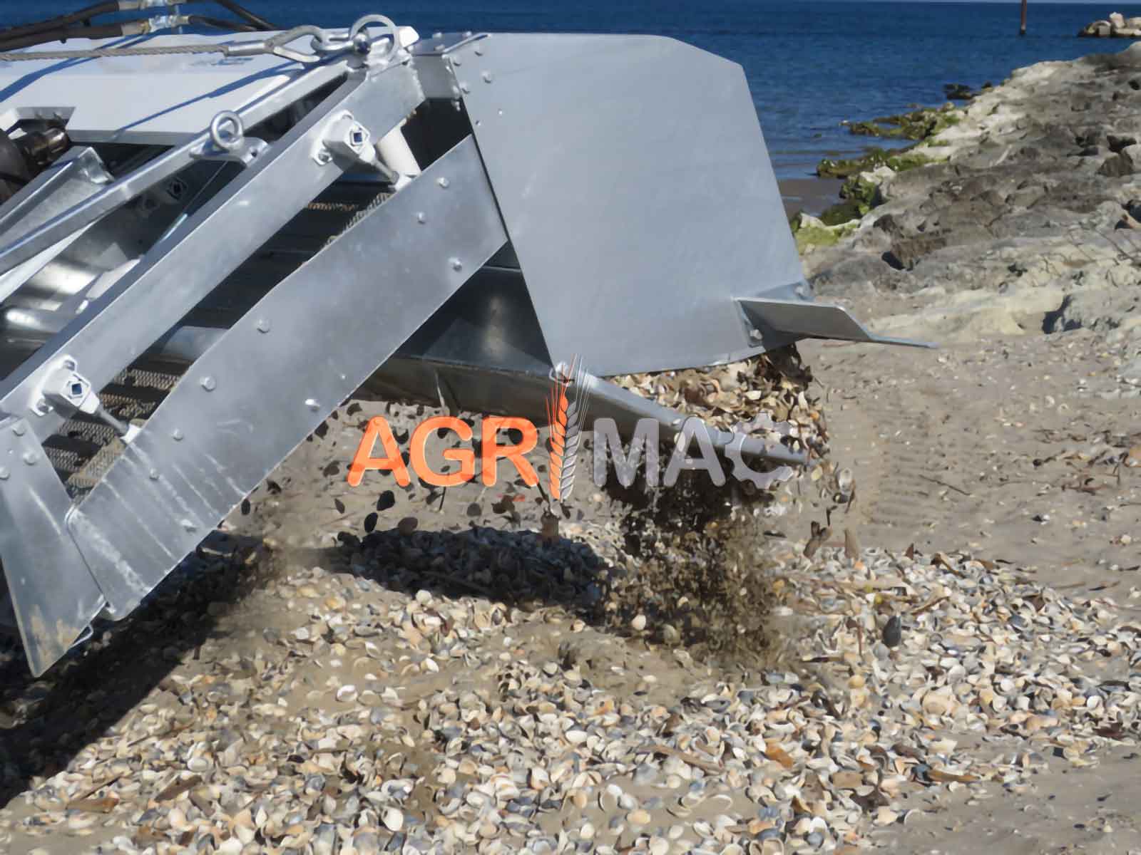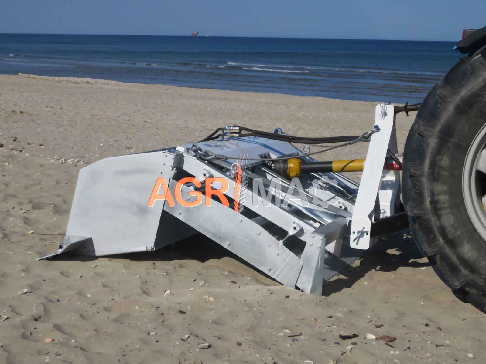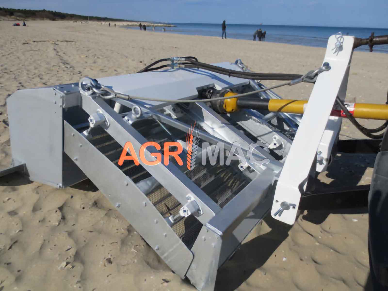 Μηχάνημα καθαρισμού παραλίας ρυμουλκούμενο με τρακτέρ, ιδανικό για χρήση με τρακτέρ 4 τροχών (50hp). Ιδανικό για καθαρισμό αμμωδών περιοχών (παραλίες, αποθήκες γηπέδων γκολφ, παιδικές χαρές, γήπεδα beach volley κ.λπ.) το σύστημα δόνησης, τα εναλλάξιμα κόσκινα με διάφορα πλέγματα σε σχήμα “σκαλοπάτι” και η δόνηση υψηλής συχνότητας επιτρέπουν το πλήρες κοσκίνισμα του η άμμος που φορτώνεται από τη λεπίδα, διαχωρίζει τα απόβλητα που θα πέσουν σε πρακτικό ατσάλινο δοχείο αδειάζεται υδραυλικά. Το βάθος της εργασίας ελέγχεται από τον χειριστή που ενεργεί στον υδραυλικό ανυψωτικό του τρακτέρ. Το μηχάνημα παρέχεται με 2 δυνατά κόσκινα με παλινδρομική κίνηση Το μηχάνημα είναι εξοπλισμένο με άξονα προπέλας με ελεγχόμενη δύναμη για τη σύνδεση με την απογείωση ισχύος του τρακτέρ. Το μηχάνημα συμμορφώνεται με τους κανονισμούς ce.