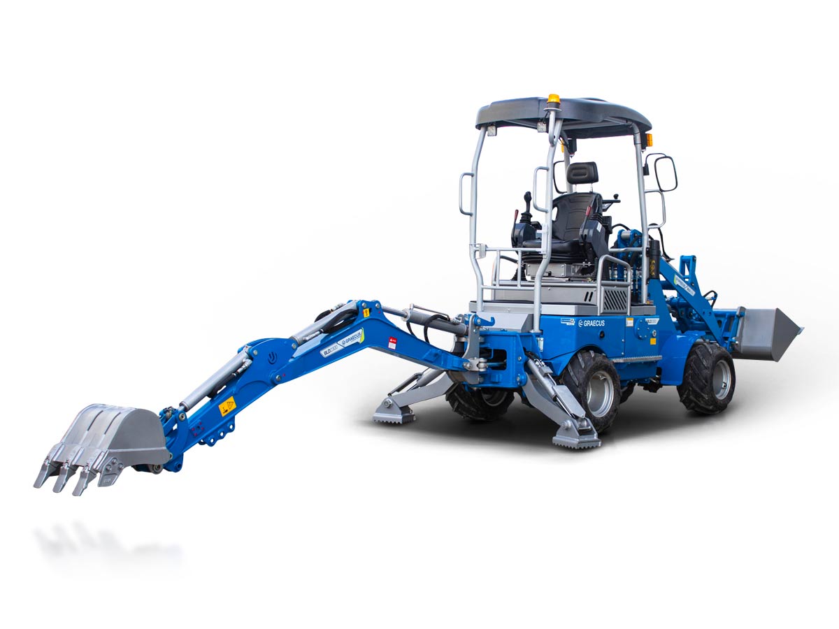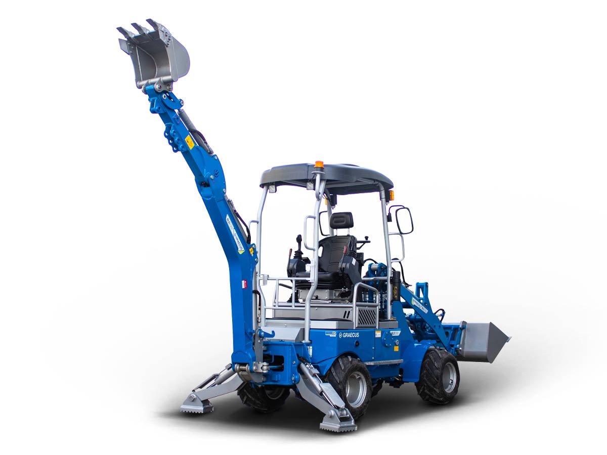 - Υδραυλικά πόδια στο πίσω μέρος εγγυώνται σταθερότητα και ασφάλεια κατά την εκσκαφή.