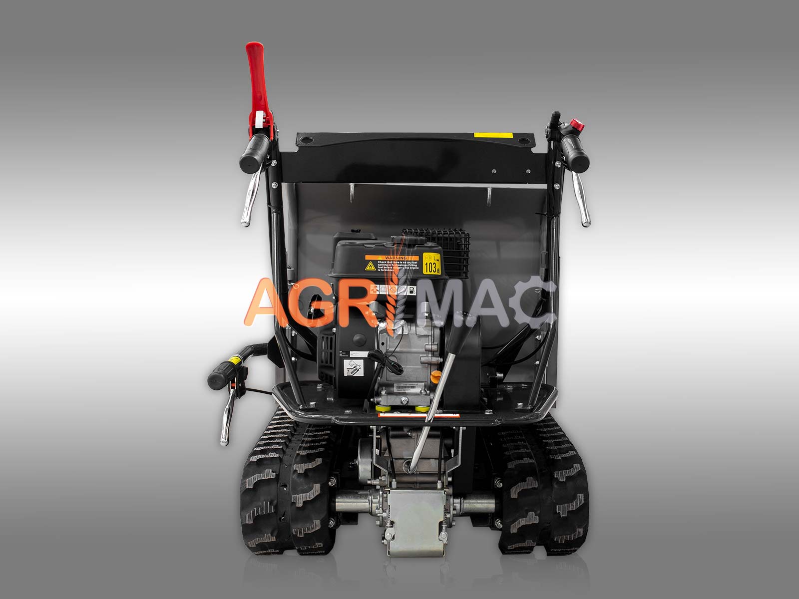 - Ερπύστριες με αυτόματο τεντωτήρα κατασκευασμένες από ειδικό ενισχυμένο καουτσούκ που εγγυώνται τέλεια πρόσφυση και σταθερότητα σε όλους τους τύπους εδάφους χάρη στο πλάτος και το πέλμα τους.
