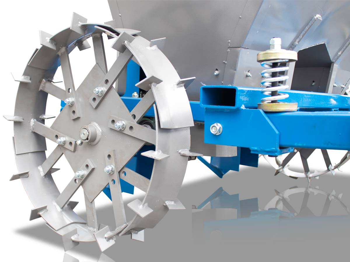 - Ρυθμιζόμενη διάμετρος στις μεταλλικές ρόδες επιτρέπει ποικιλία στην απόσταση φύτευσης σε μία σειρά(29 εκ, 32 εκ and 35 εκ).