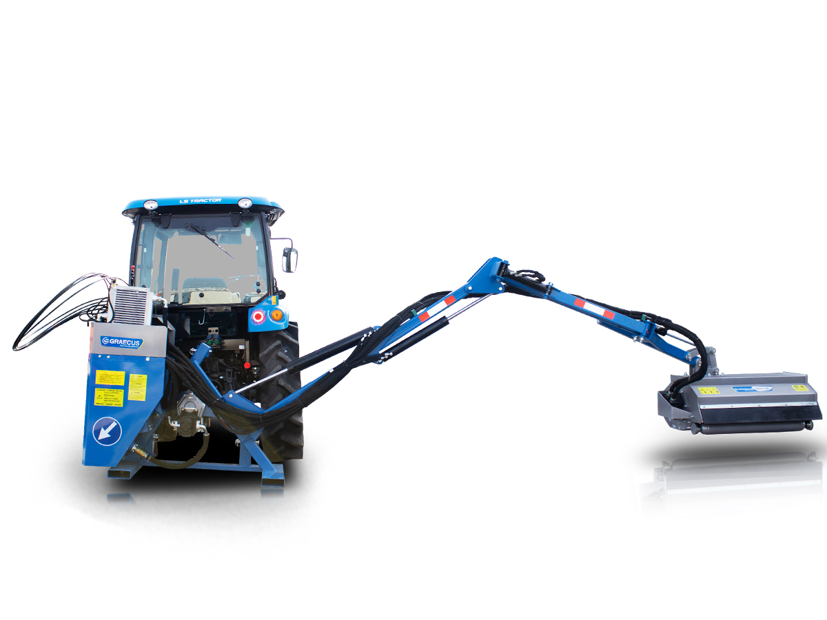 Καταστροφέας με βραχίονα, υδραυλικά αυτόνομος για το πίσω μέρος του τρακτέρ. Κατάλληλος για εργασίες σε επικλινές έδαφος, σε χλοοτάπητες, στις παρυφές των δρόμων και σε κήπους.