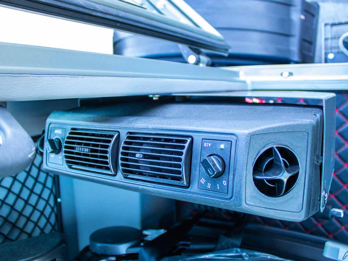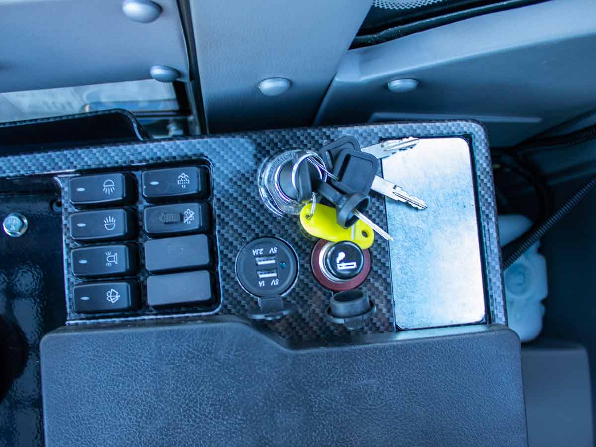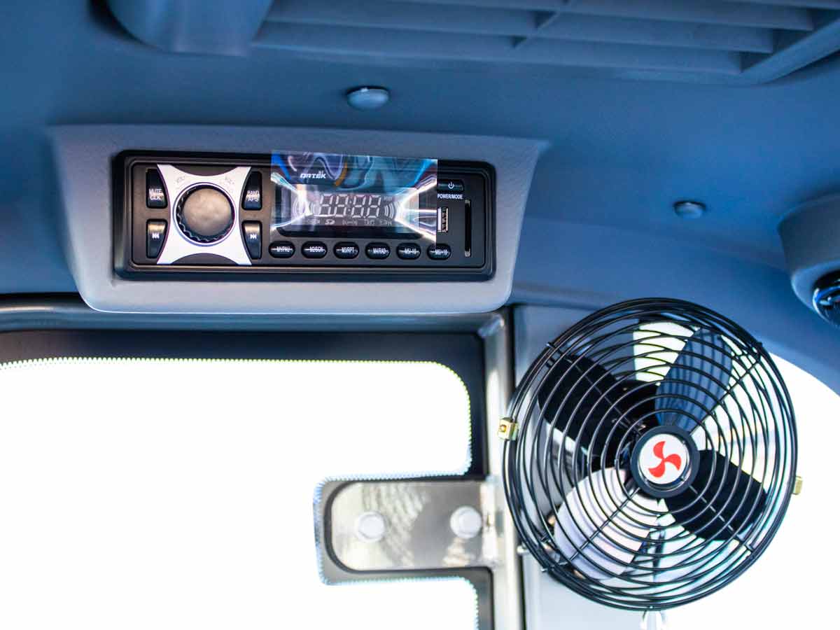 - Ευρύχωρη καμπίνα ασφαλείας με Aircondition και κάμερα οπισθοπορείας.